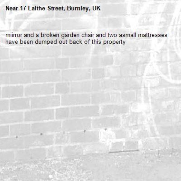 miirror and a broken garden chair and two asmall mattresses have been dumped out back of this property