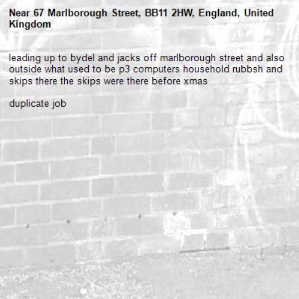 leading up to bydel and jacks off marlborough street and also outside what used to be p3 computers household rubbsh and skips there the skips were there before xmas duplicate job